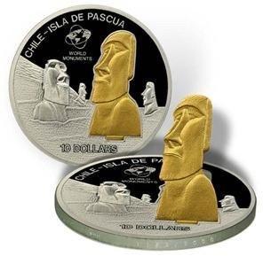 镀金的摩艾巨人像可以插在币上,竖立起来