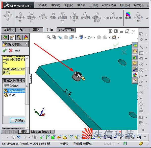 第二步:做完第一步后,在装配的时候,只要插入螺丝的时候,鼠标在圆柱孔附近的时候,就会自动捕捉,如图所示