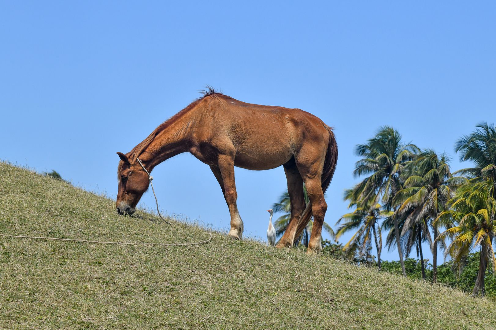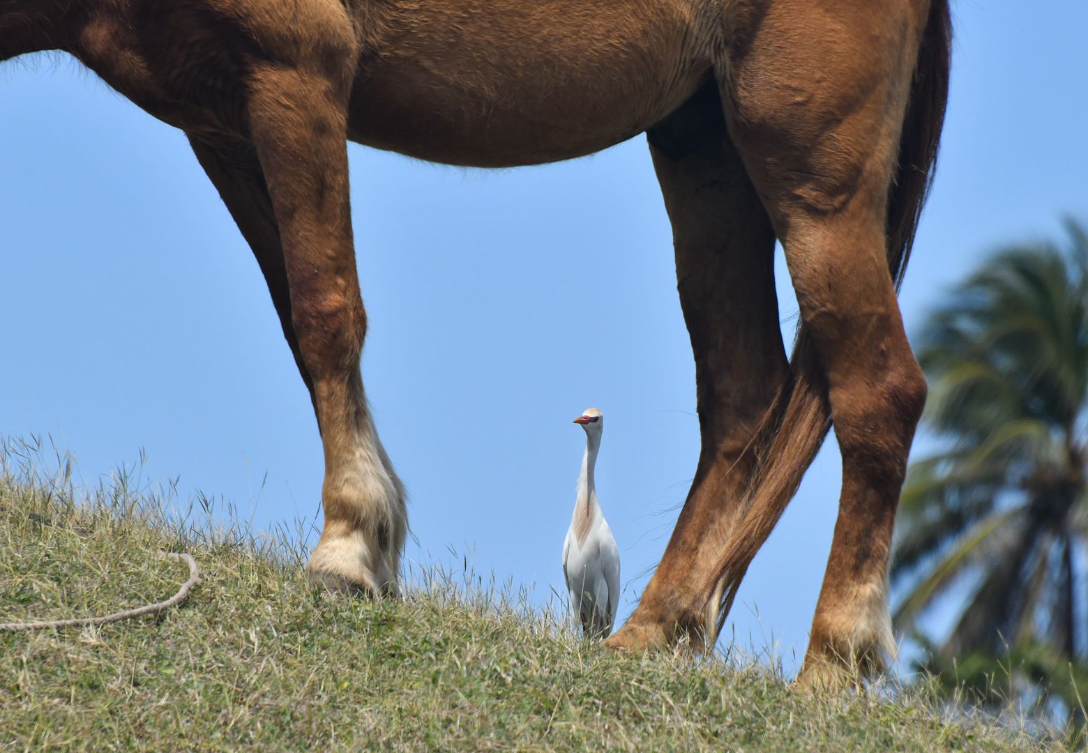 小镇"郊区"的路边常看到高大棕榈树下放养的牛和与它们形影不离的牛背鹭。