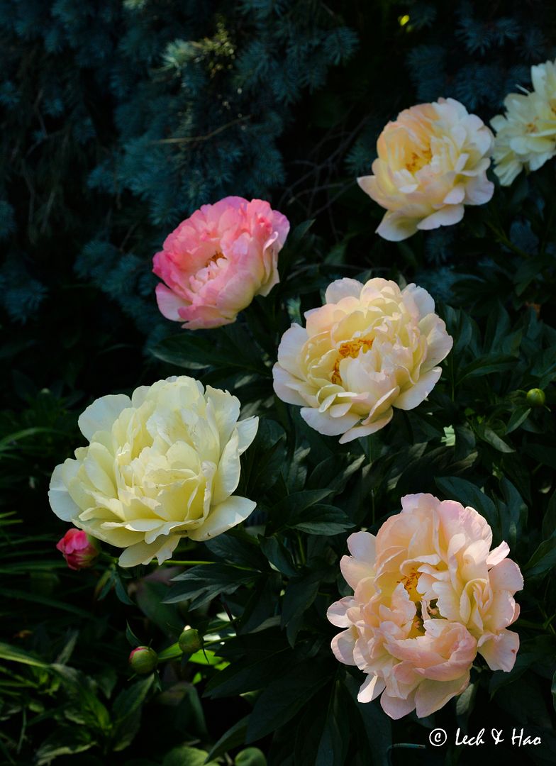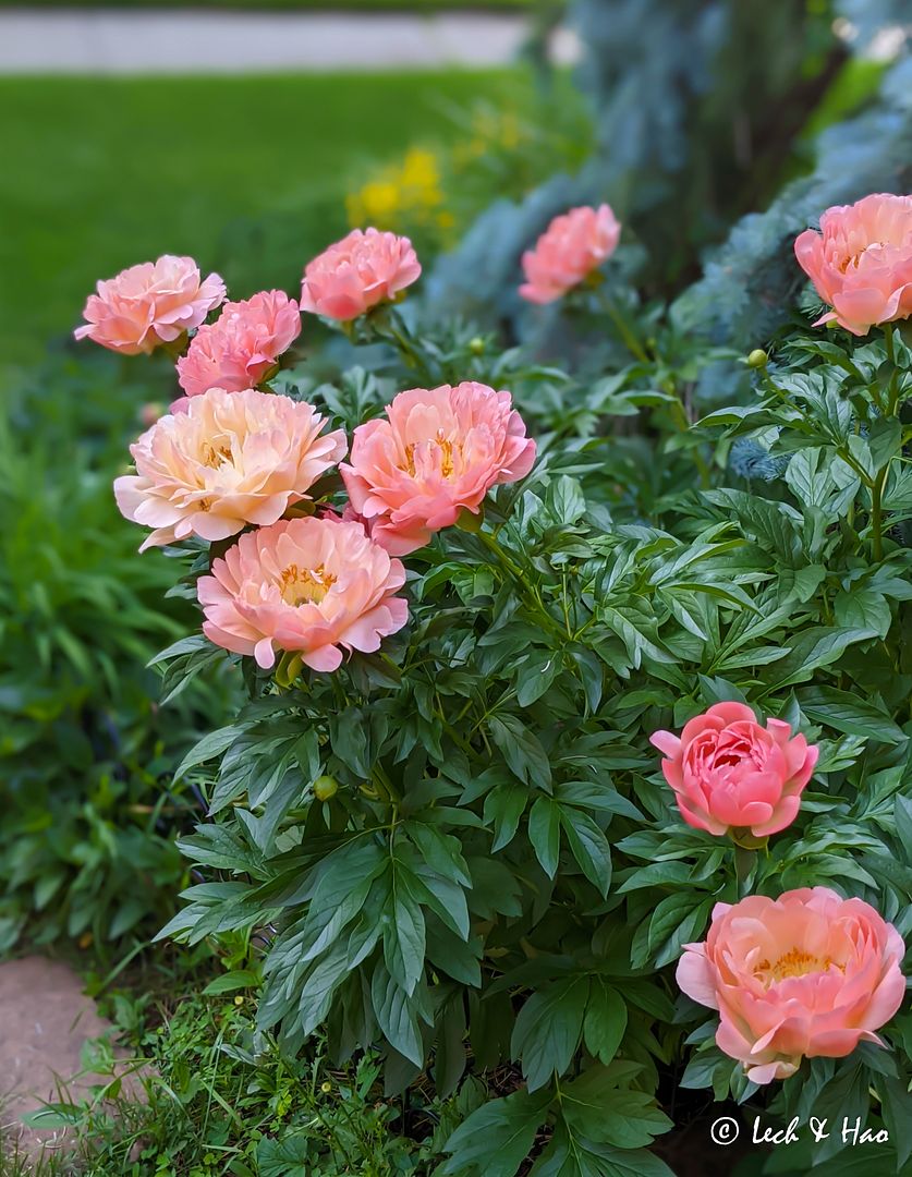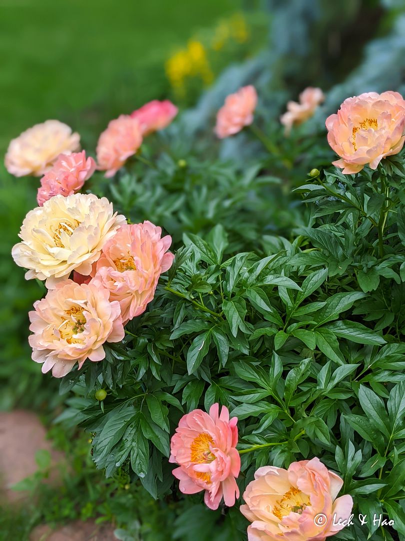 伊藤牡丹,它的花期在牡丹之后,传统的芍药之前,正好填补一个空白期。记得我买的品种是coral。种了两年惊喜地发现这种变色的芍药挺有特点,从刚开时的珊瑚色逐渐变淡,几天后不同天开的花混合在一起竟然有了同株不同色的效果。从第一朵花开算起,主花之可持续七八天,后开的副花还可再延续六七天,当然副花就小很多了。