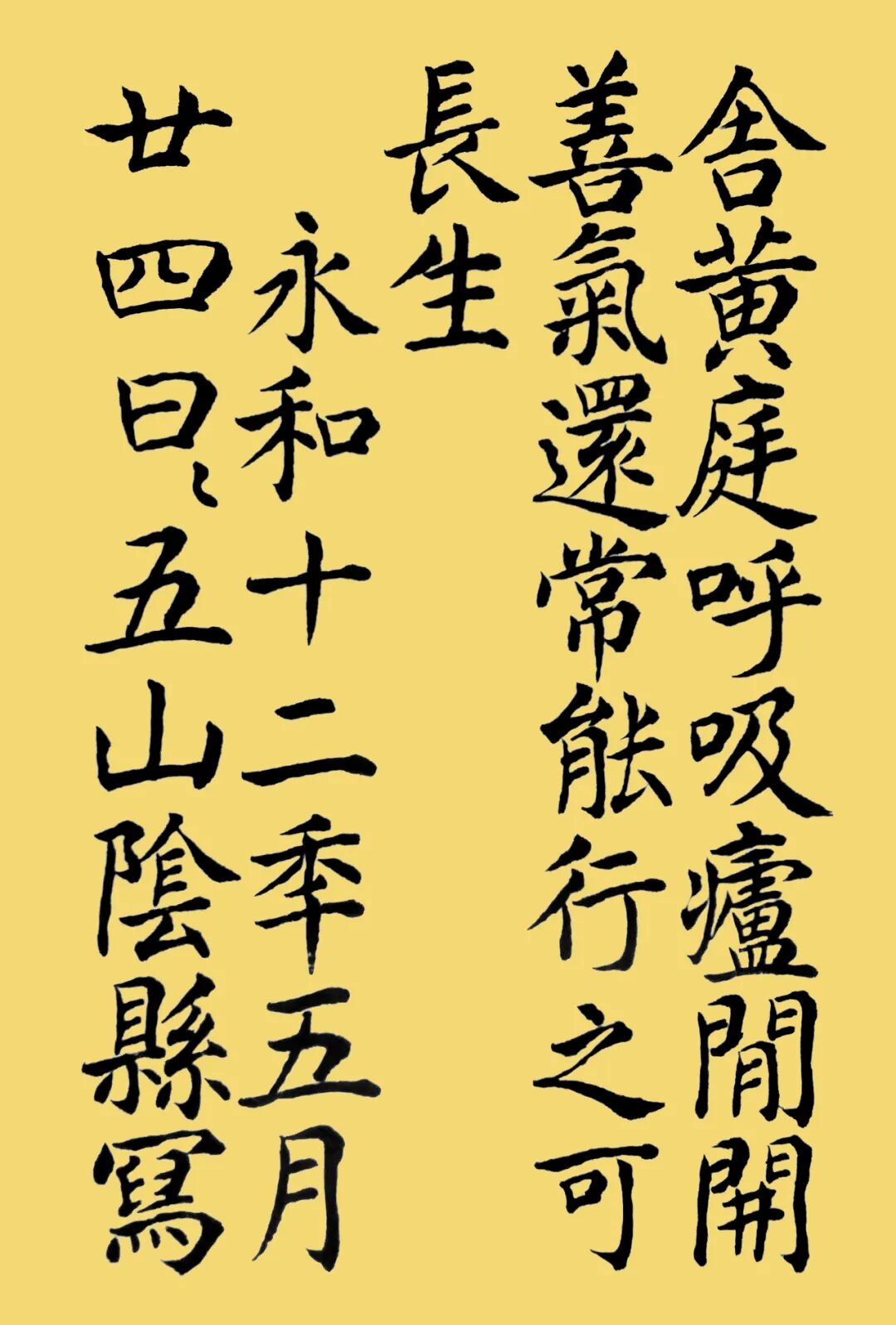 周捷书法对话古人之王羲之小楷《黄庭经》(用大楷书写)上有黄庭,下有关元,前有幽阙,后有命门