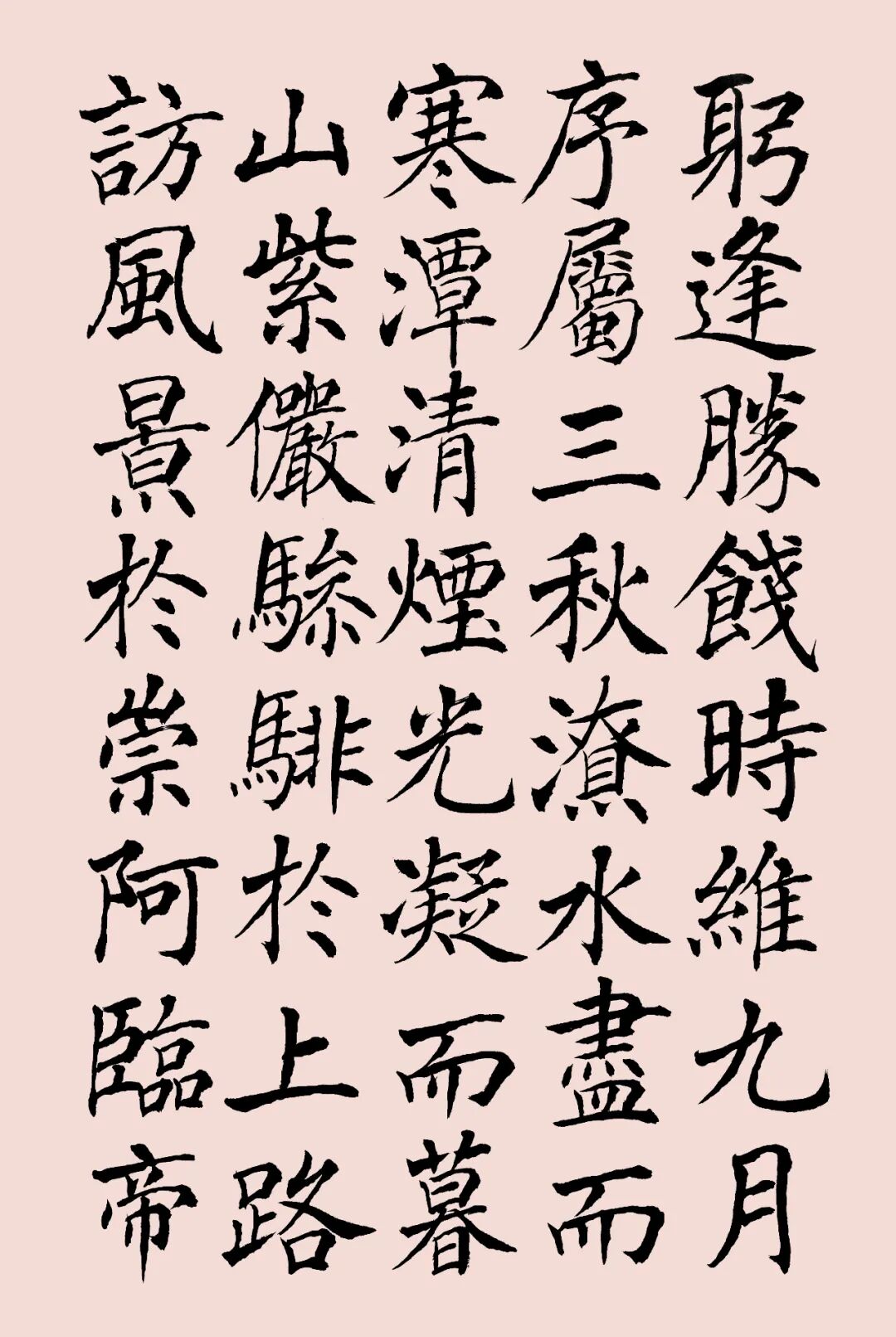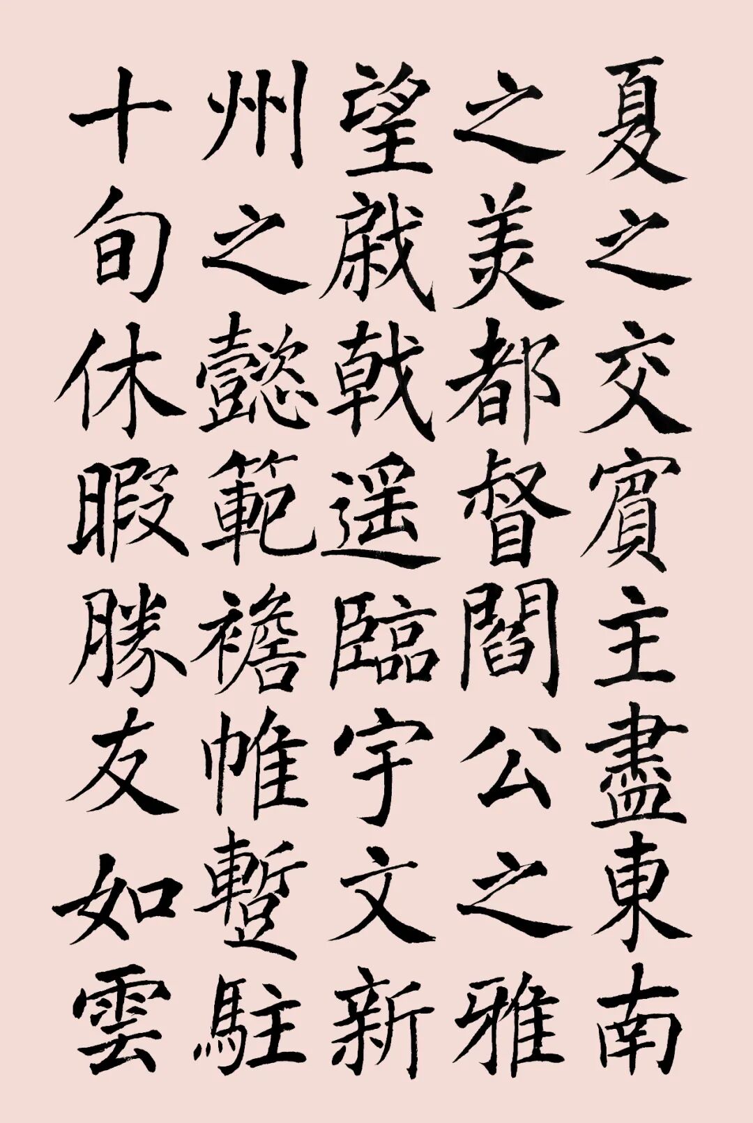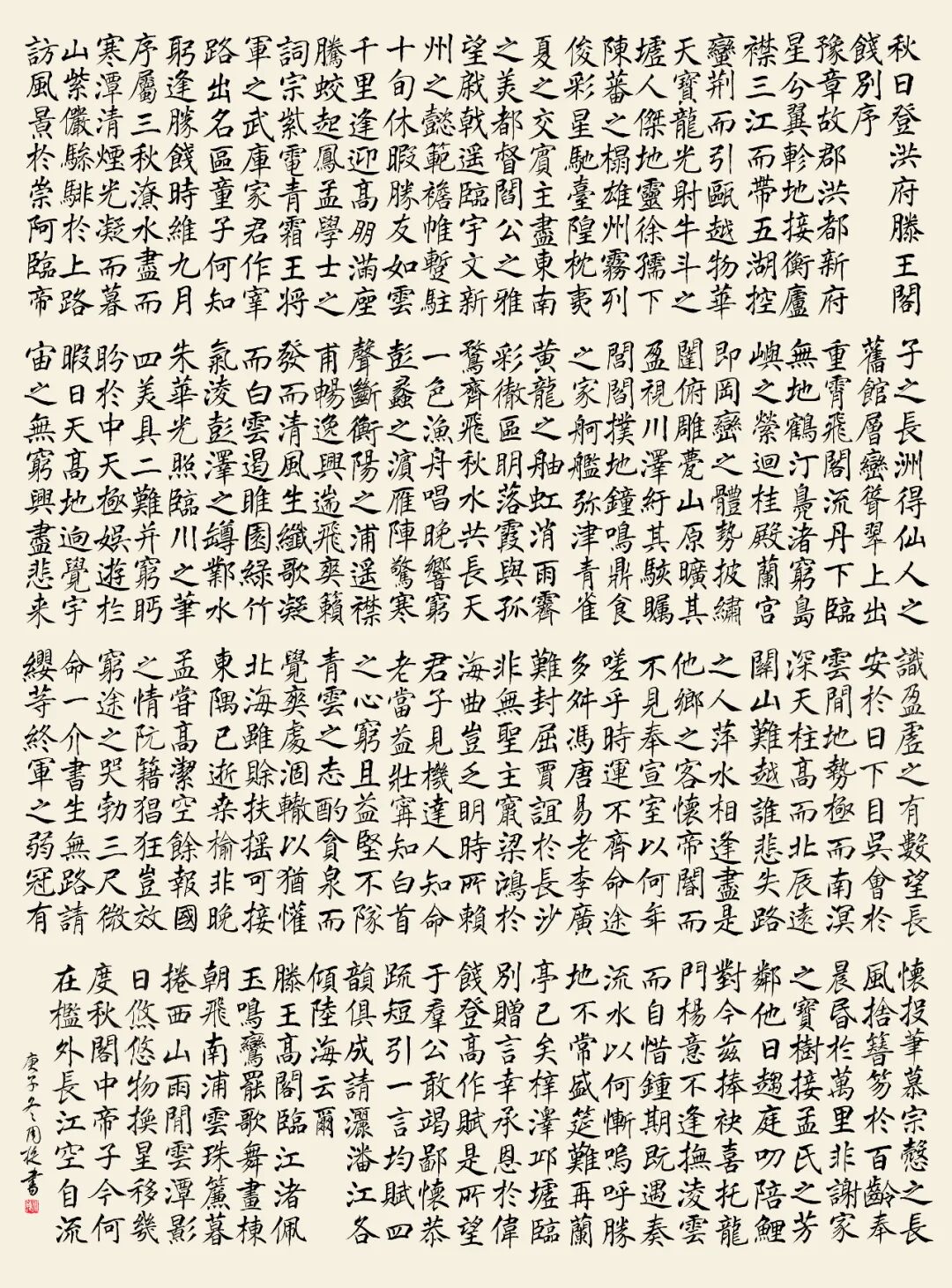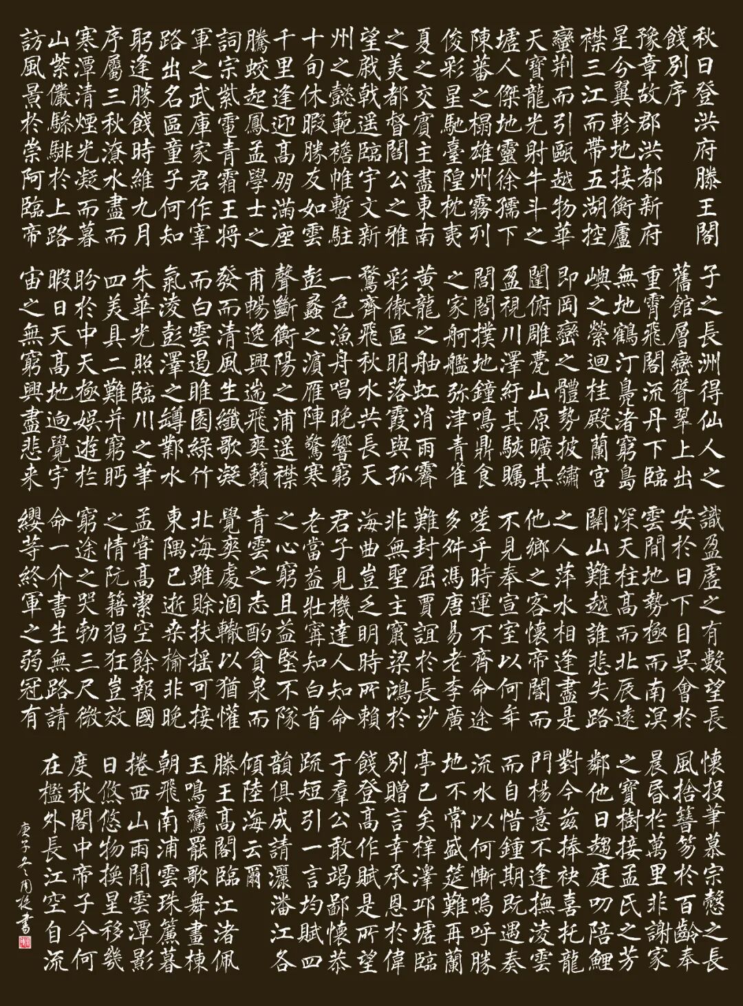 周捷书法楷书《滕王阁序》落霞与孤鹜齐飞,秋水共长天一色。老当益壮,宁移白首之心?穷且益坚,