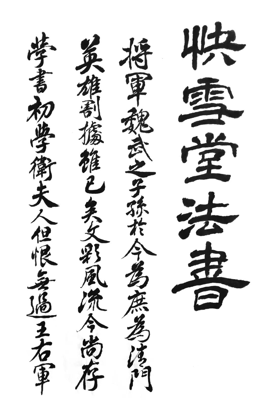 《快雪堂法书》,无刻石年月。涿州(今河北涿州)冯铨汇集晋·王羲之至元·赵孟頫诸家书法墨迹,因得王羲之《快雪时晴帖》,因以此帖冠其首而名其帖。宛陵(今安徽定城)刘光旸为镌刻名手,刻法秀润,有“天画神镂”之誉。此帖后传入清宫内府。原石长短宽窄不一,且有木刻3版,入内府后将长短宽窄统一