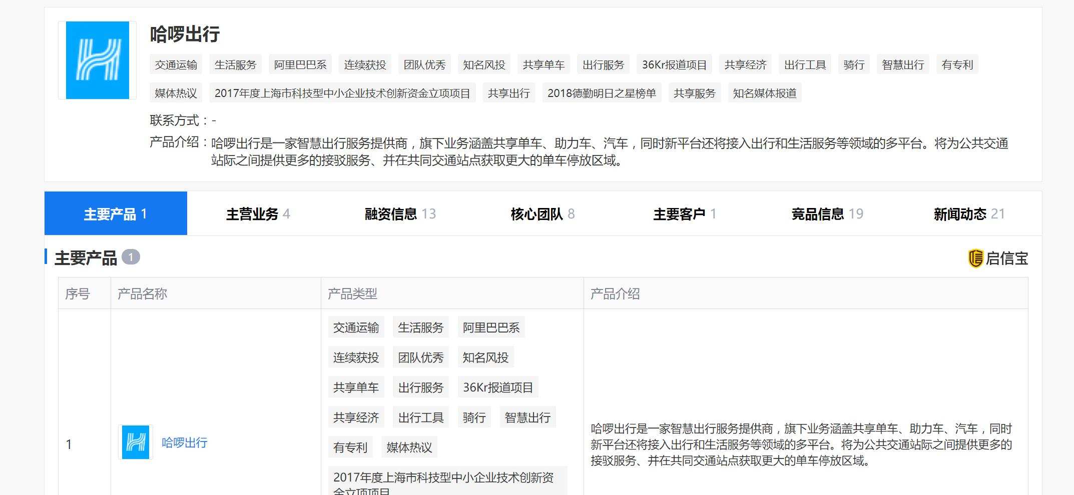 根据启信宝的报道,2016年3月成立至今,三年多时间内,除天使轮外,哈啰出行已完成14笔融资,目前估值约为40亿-50亿美元。投资方包括蚂蚁金服、复星集团、威马汽车、春华资本等。