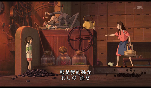 13. 「擬制親族」虽然不是血缘亲,但经过礼仪等仪式具有与实际的亲子,兄弟姐妹一样或更亲密的关系,如乌帽子父母,教父等。这儿锅炉爷爷说千寻是自己的孙女从而使之名正言顺,别人不会有太多的抱怨。
