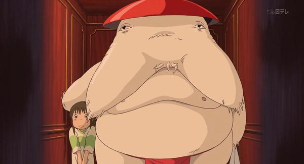第二,现在的无面男是虫子的形象。看过卡夫卡的《变形记》的同学们都知道,虫子的形象。这里宫崎骏也是与之暗合的。