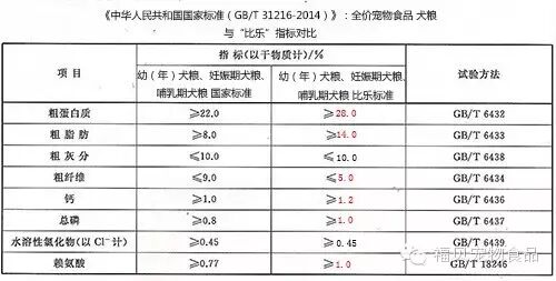 作为两项国家标准起草制定的参与者,福贝宠物食品的各项标准均达到要求,其中的某些指标高于国标标准。例如,福贝旗下品牌“比乐”犬粮的主要理化指标就高于国标标准: