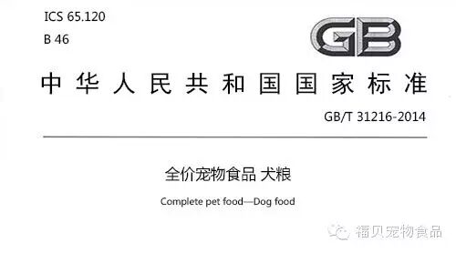 2014年9月3日,《中华人民共和国国家标准(GB/T 31216-2014)》(全价宠物食品