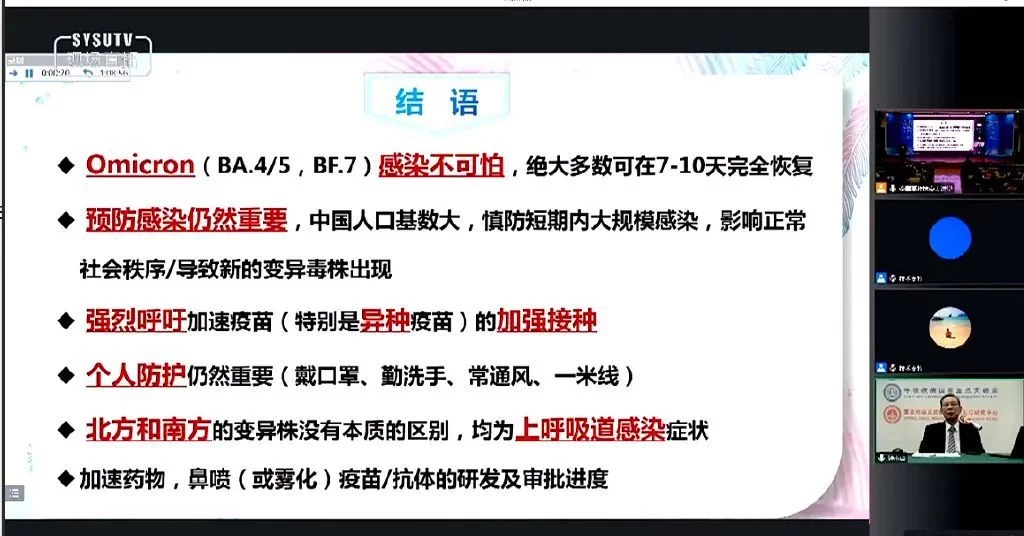 针对现在有种说法“早也阳、晚也阳、不如大家一起阳”,钟南山表示,这种观念不可取。因为很短时间内大面积感染,会影响正常社会秩序,而且容易导致新的变异株出现。钟南山强烈呼吁加速疫苗(特别是异种疫苗)的加强接种。同时他还强调,个人防护仍然重要,戴口罩、勤洗手、常通风、一米线。