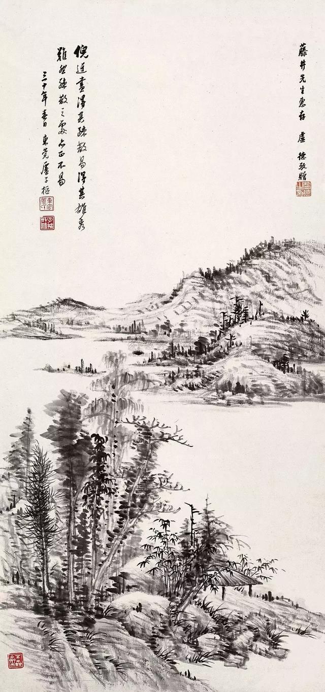 倪瓒早年画风清润,晚年变法,平淡天真。疏林坡岸,幽秀旷逸,笔简意远,惜墨如金。以侧锋干笔作皴,名为“折带皴”。墨竹偃仰有姿,寥寥数笔,逸气横生。书法从隶入,有晋人风度,亦擅诗文。