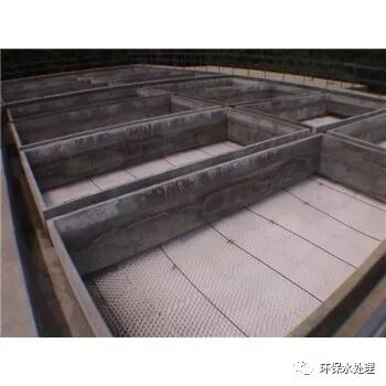(3)进水方式一般设置配水整流布水装置,常用的有穿孔配水板和缝隙配水板等,整流配水孔流速一般低于0.15m/s。出水方式一般采用在池面上没置多条集水槽的方式,集水槽的集水方式为孔眼式或三角堰式。