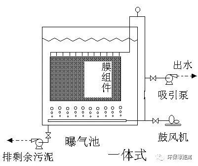 MBR池是该技术应用设计工艺过程的关键部分。一方面,在MBR池内进行好氧生化反应。另一方面,膜的过滤和截留污泥的作用也在MBR池内实现。