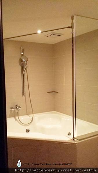 浴缸的部分,设计还蛮特别的,还有一个小凹槽可以让人坐着泡脚或泡澡。