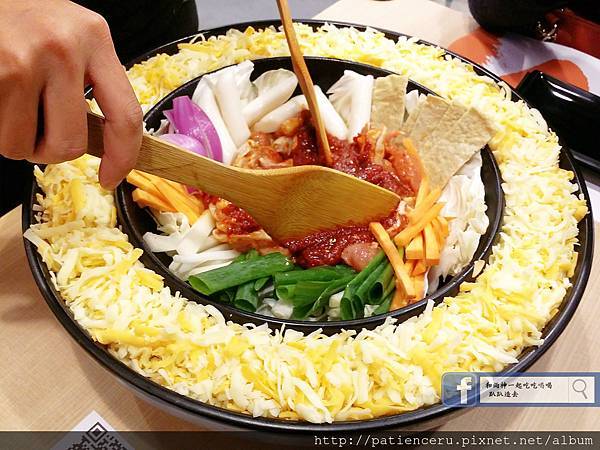 我们点的是-李光洙爱情(双倍起司) 春川炒鸡排锅$248/人(随餐附:泡菜、汤品、甜不辣、生菜或白饭)