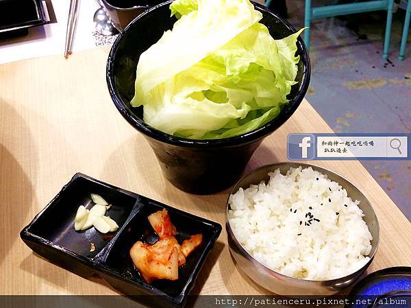 可选择要配生菜或白饭,并提供大蒜和口味偏酸的泡菜帮助提味且采无限量提供,喜欢吃口味重的朋友可尝试。