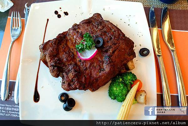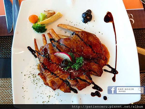 因为我们只能选餐券上的餐点,于是我们点了义式香草猪肋排和义式香烤羊肋排。(餐点都是套餐)