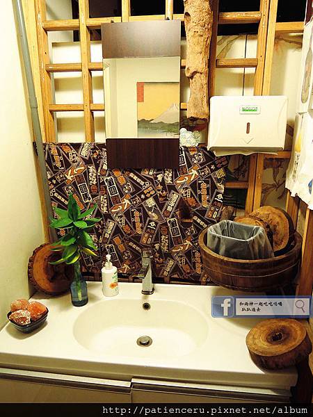 延续外场用餐区的装潢摆设,厕所的气氛营造也不马虎随性。