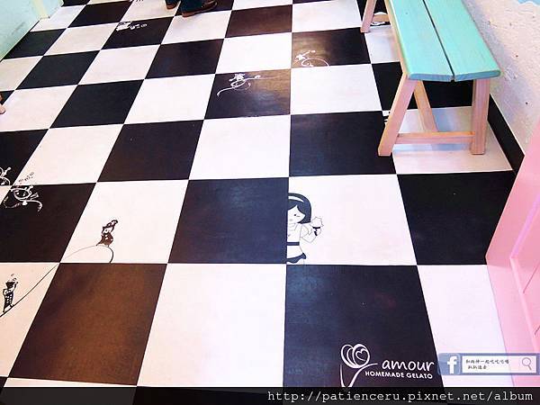 首先刚走进门的西洋棋盘的黑白格地板,仔细一看,还有加点小巧思,瞬间让单调的黑白格地板多了点活泼的趣味。
