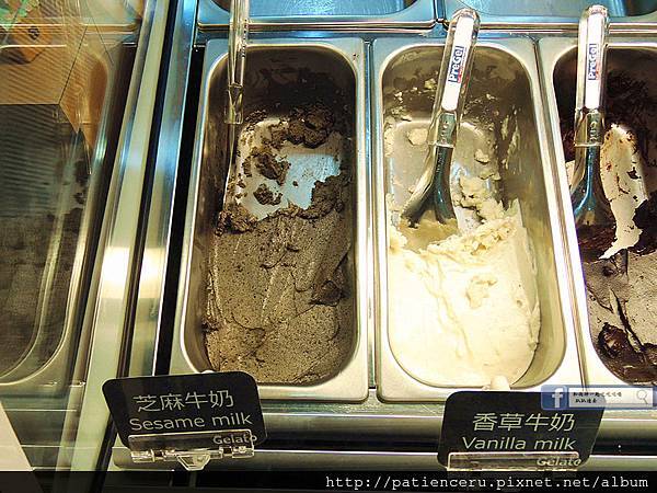 Gelato的冰淇淋口味有:芝麻牛奶、香草牛奶。