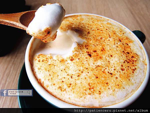 喝起来苦中带微甜,表面的焦糖烤到酥脆状,怕咖啡会变得太甜的朋友要赶快喝,焦糖才不会融入咖啡里喔!