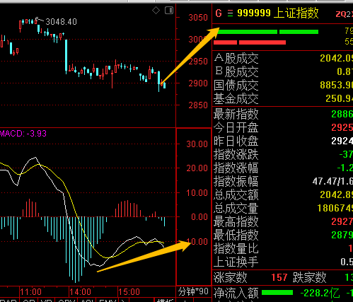按照虎子之前的判断, 最差这里跌倒2850附近,今天市场因为跌, 让90分钟级别的底背离形态发育的更加完好,这位后期的反攻行情做好了铺垫: