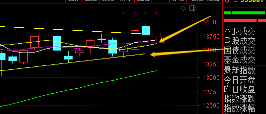 首先是多条中短期均线密集汇合在13700附近,均线支撑力度强, 再往下 就是我老生常谈的 三角形下轨线支撑了,因此尾盘的拉升也就不意外了。