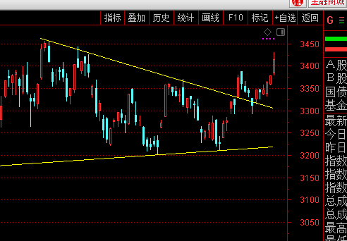 指数在慢慢的脱离趋势线, 越远越好, 长达三个月多的震荡平台突破后 下方的大箱体 就可以确任为大型洗盘平台, 箱体里面的平台筹码 被洗的, 被交换的都差不多了,所以这个地方 一旦拉升,破3500点是第一要务。也不会有太大的阻碍。