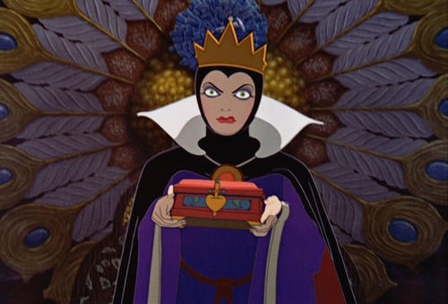 这位皇后甚至没有一个名字,但是她的这个人物的设定却为此后迪士尼的反派形象提供了一个标版。众所周知的故事是,这位受嫉妒驱使的皇后一次次想要杀死她那美丽善良的继女白雪公主,计划失败后她扮成一个农妇骗白雪公主吃下了一个毒苹果。