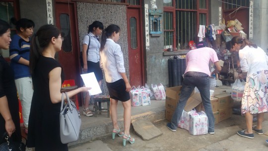 现场实景:由爱心企业——佰睿奶粉专卖连锁安阳分公司、林州市佰睿奶粉专卖连锁姚村店、陵阳店联合组织发起的捐赠,价值21000元的爱心奶粉及婴幼儿用物品。