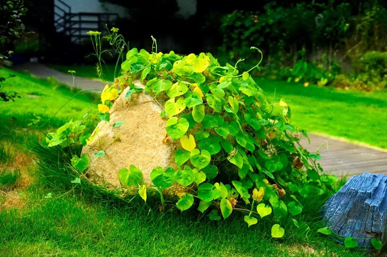 草坪打理的很好。藤蔓枝丫,同坞里的一草一物感觉都带有点诗情画意。