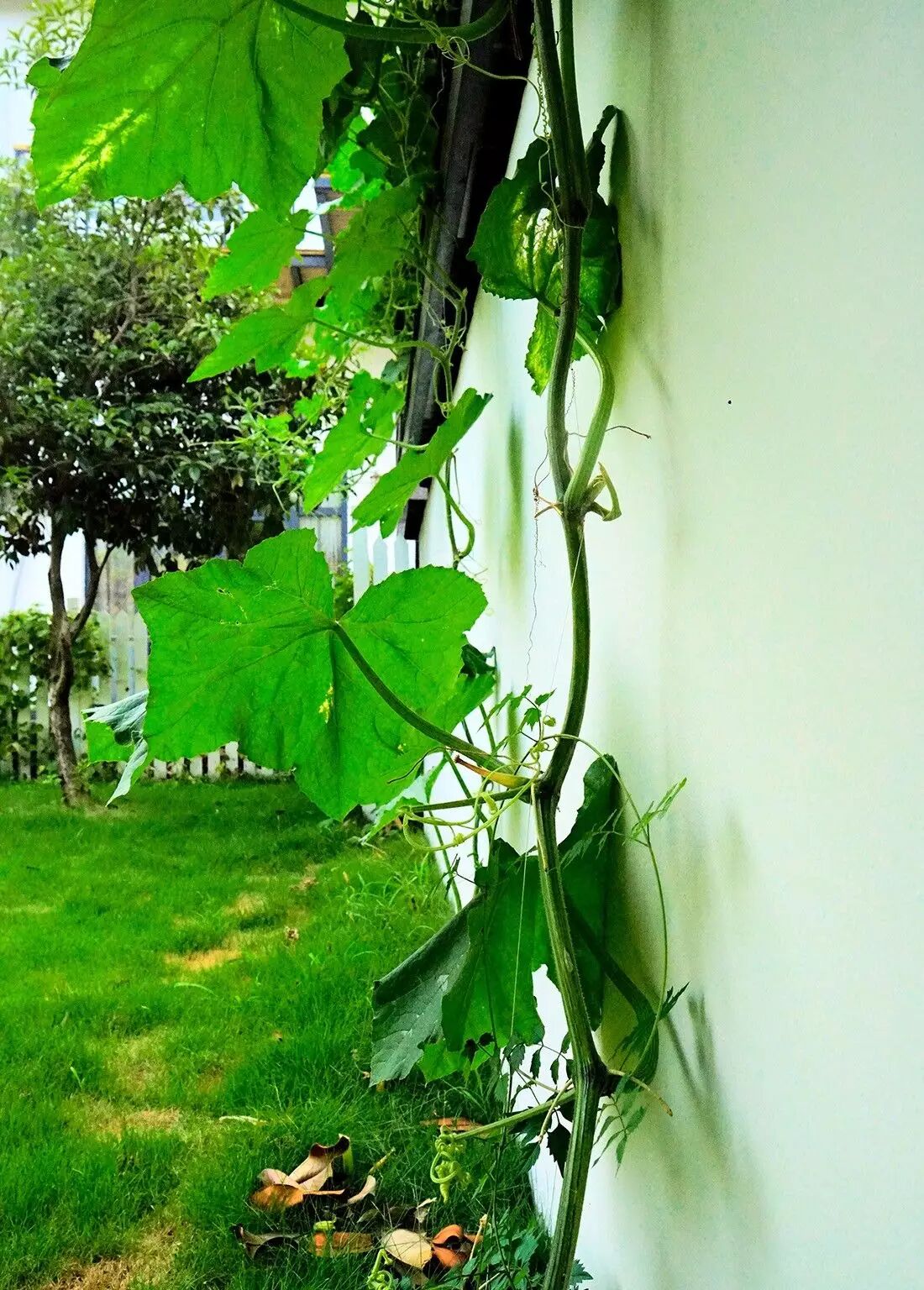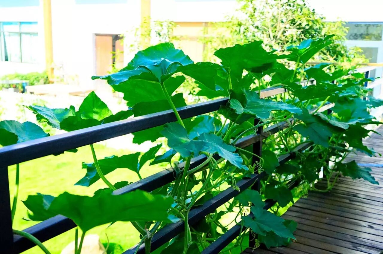 餐厅外爬满了南瓜藤。这里是食堂师傅们自己种的南瓜。这个餐厅像是一个小田园。