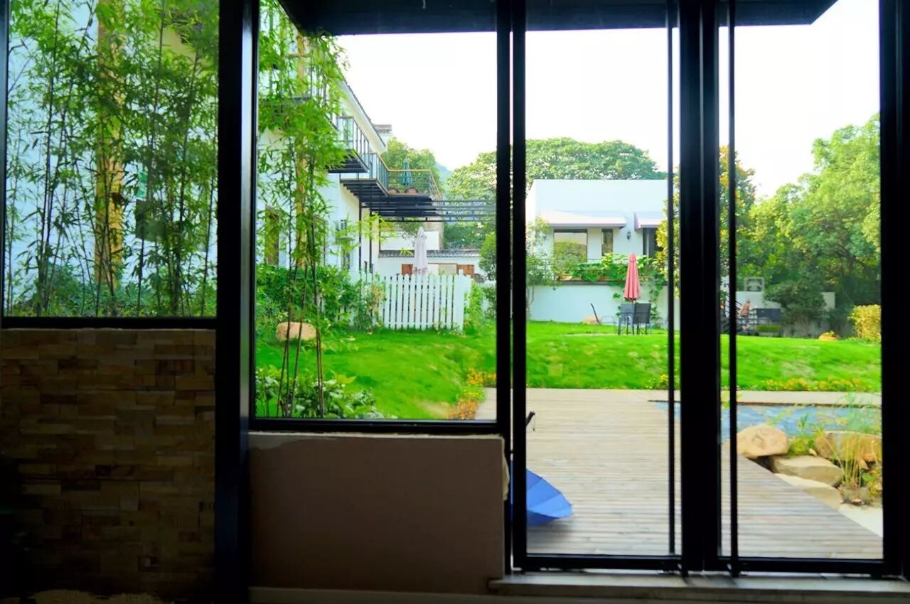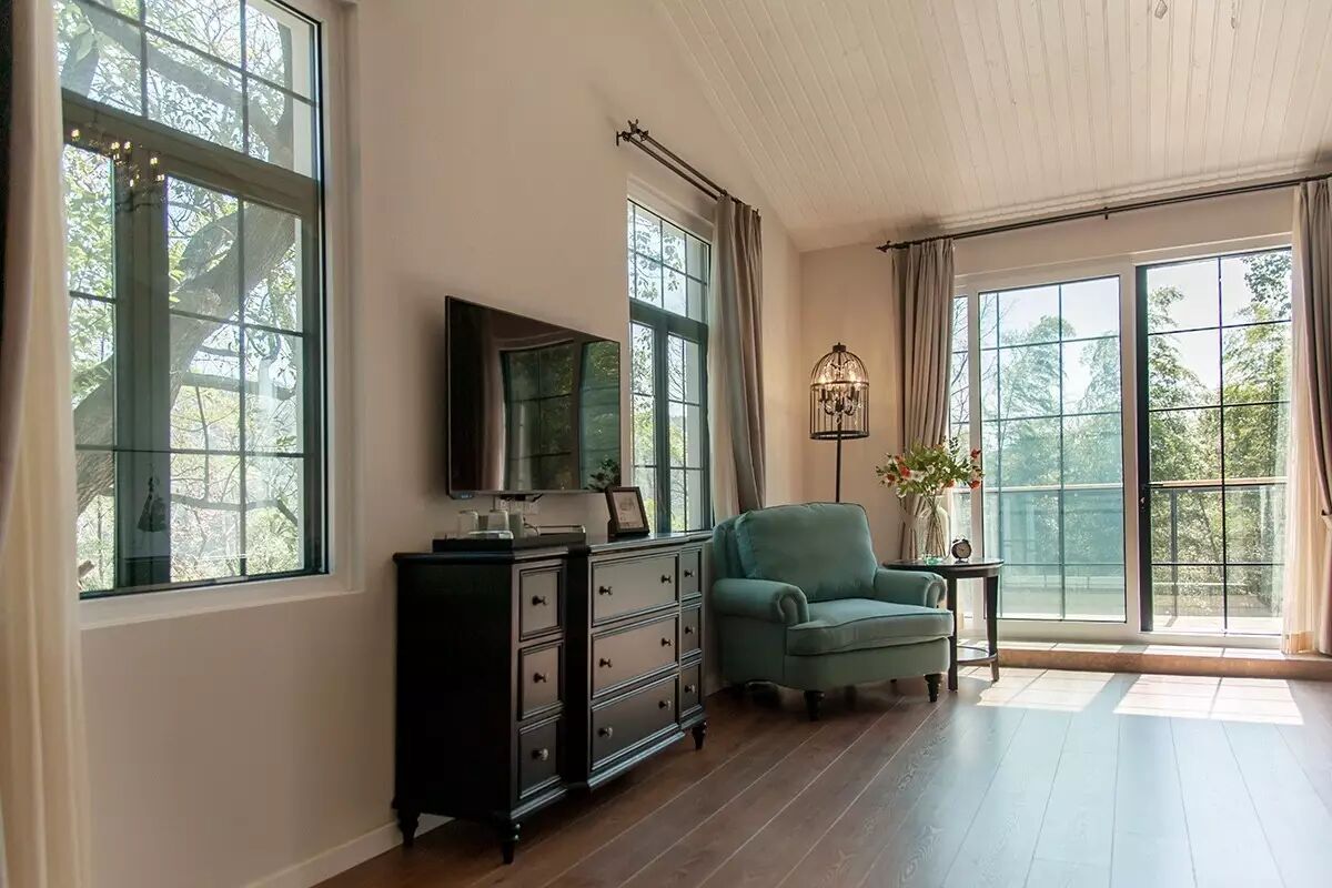 清晨拉开窗户,窗外就是一片青翠的茶园,陶醉在大自然的美色里一会。乡野趣味,就藏在这小小的茶园美墅里。