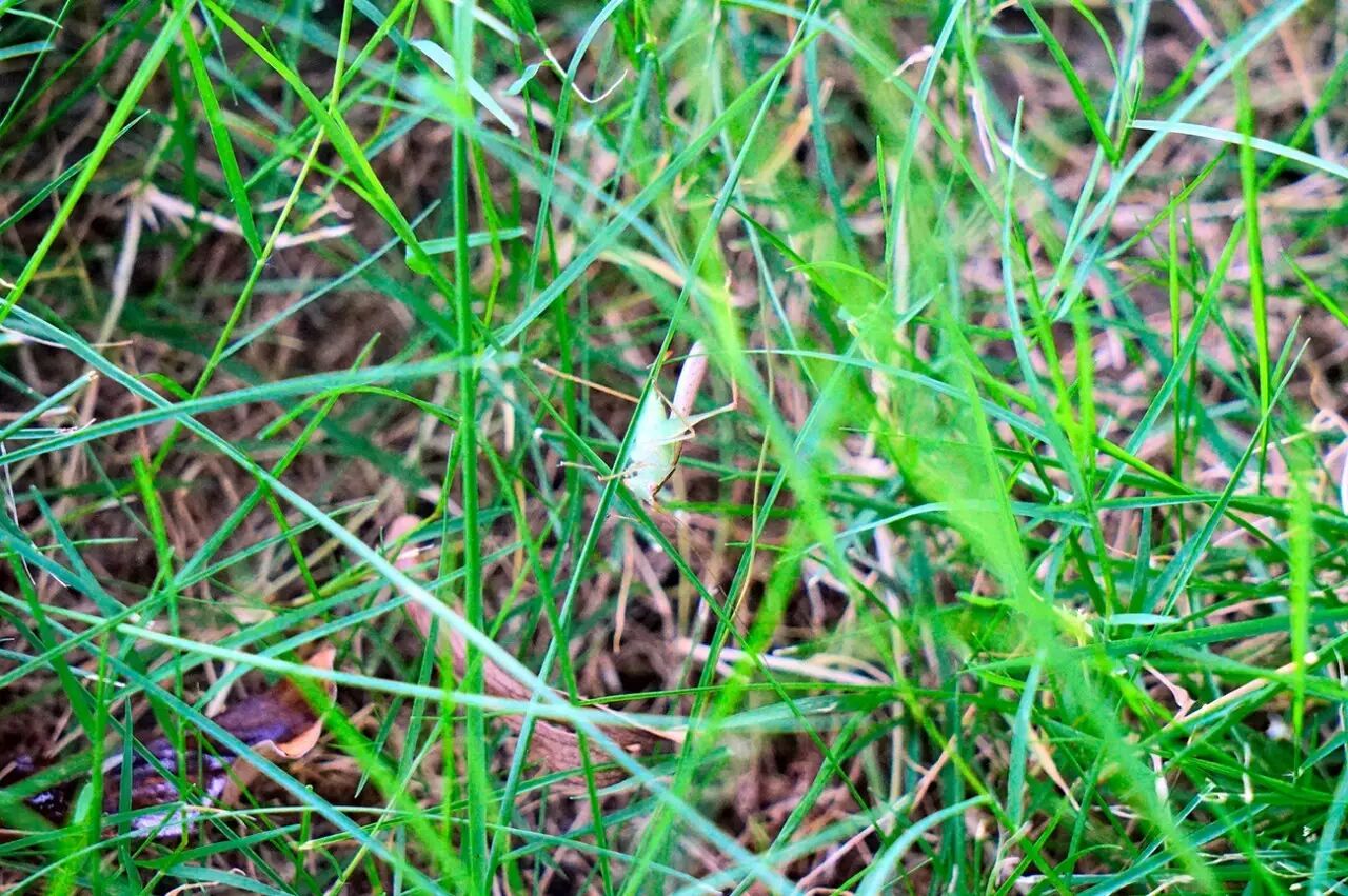 光着脚,感觉自己在这块草坪上像个孩子一样去发现不同的趣味。我在草丛里发现了一只小蚂蚱。这里的生态环境好好。记忆中只有小时候才趴在草地上去仔细地观察过蚂蚱。