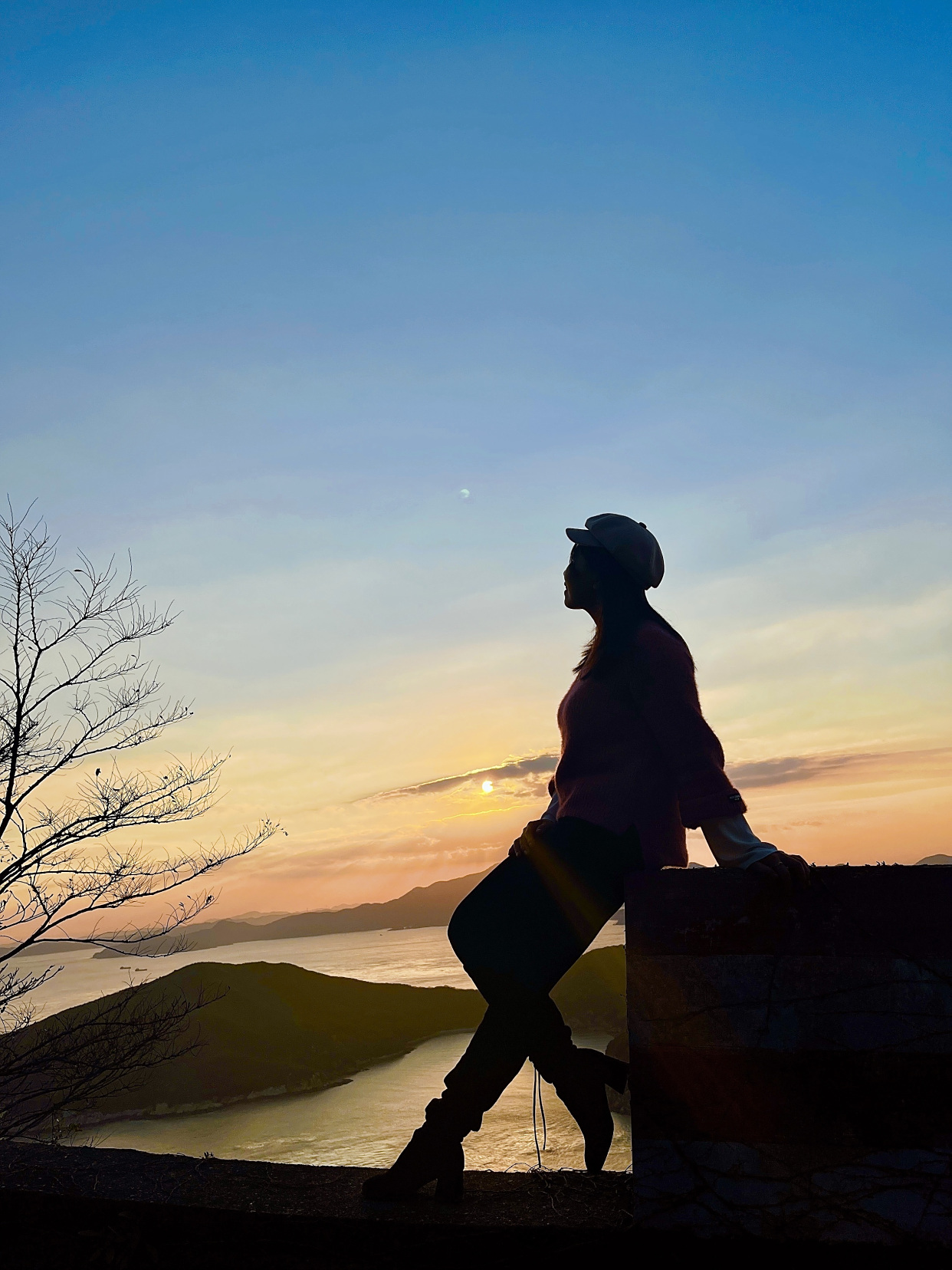 旅行Tips:冬日夕阳落日的时间不长,最好在4,5点的时候到山顶,可以赶上夕阳的余晖。在这里拍写真,真的很美!心满意足地在景区游玩了一下午。返回朱家尖去晚餐了。