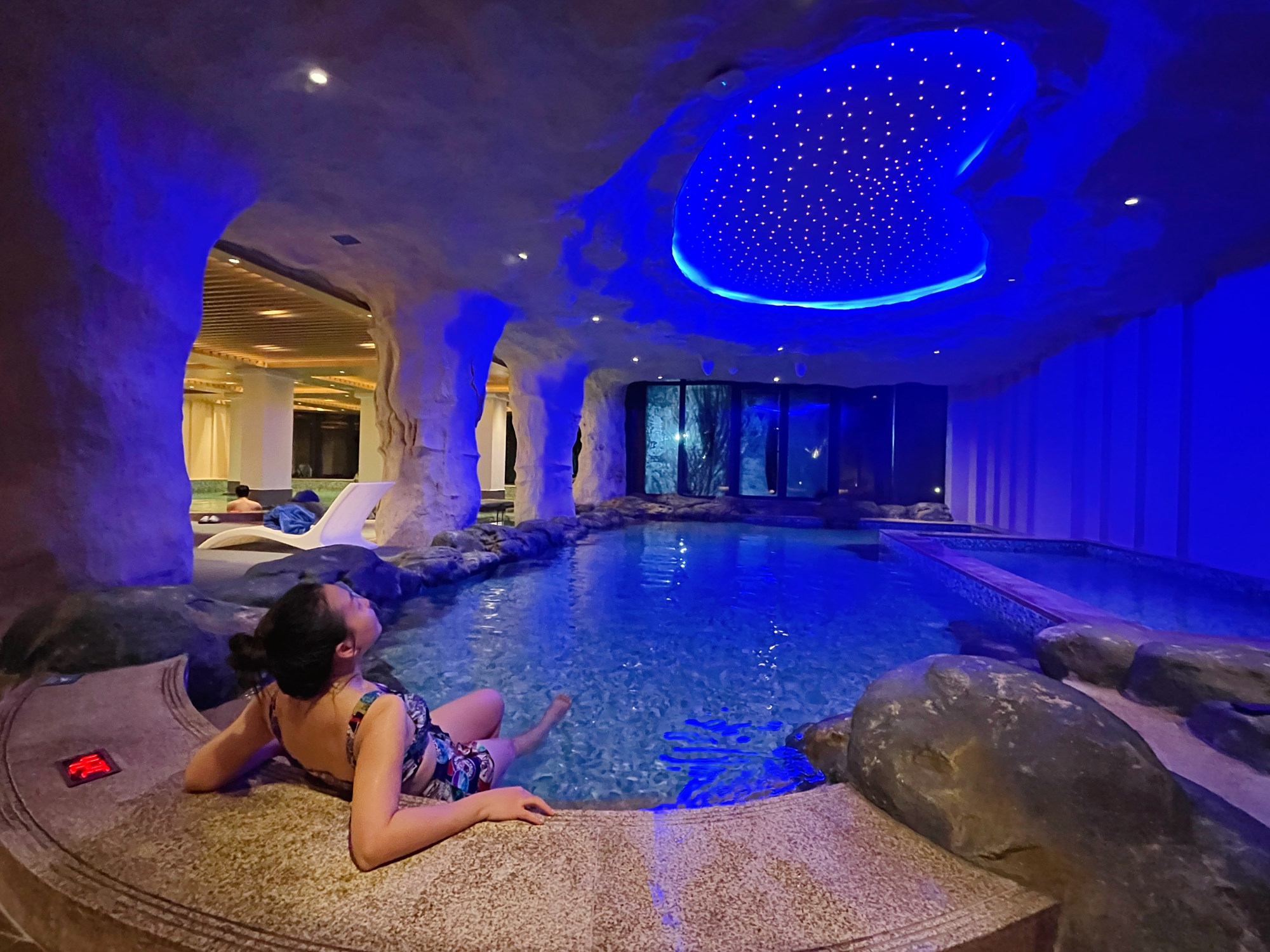 入住后,我马上去泡温泉啦!最喜欢在冬天泡温泉了。酒店有室内和室外温泉!水温都在41度左右,冬天也不会感觉寒冷。室内温泉是地中海风格,非常大!温馨又浪漫!很享受在这里泡温泉的时光!