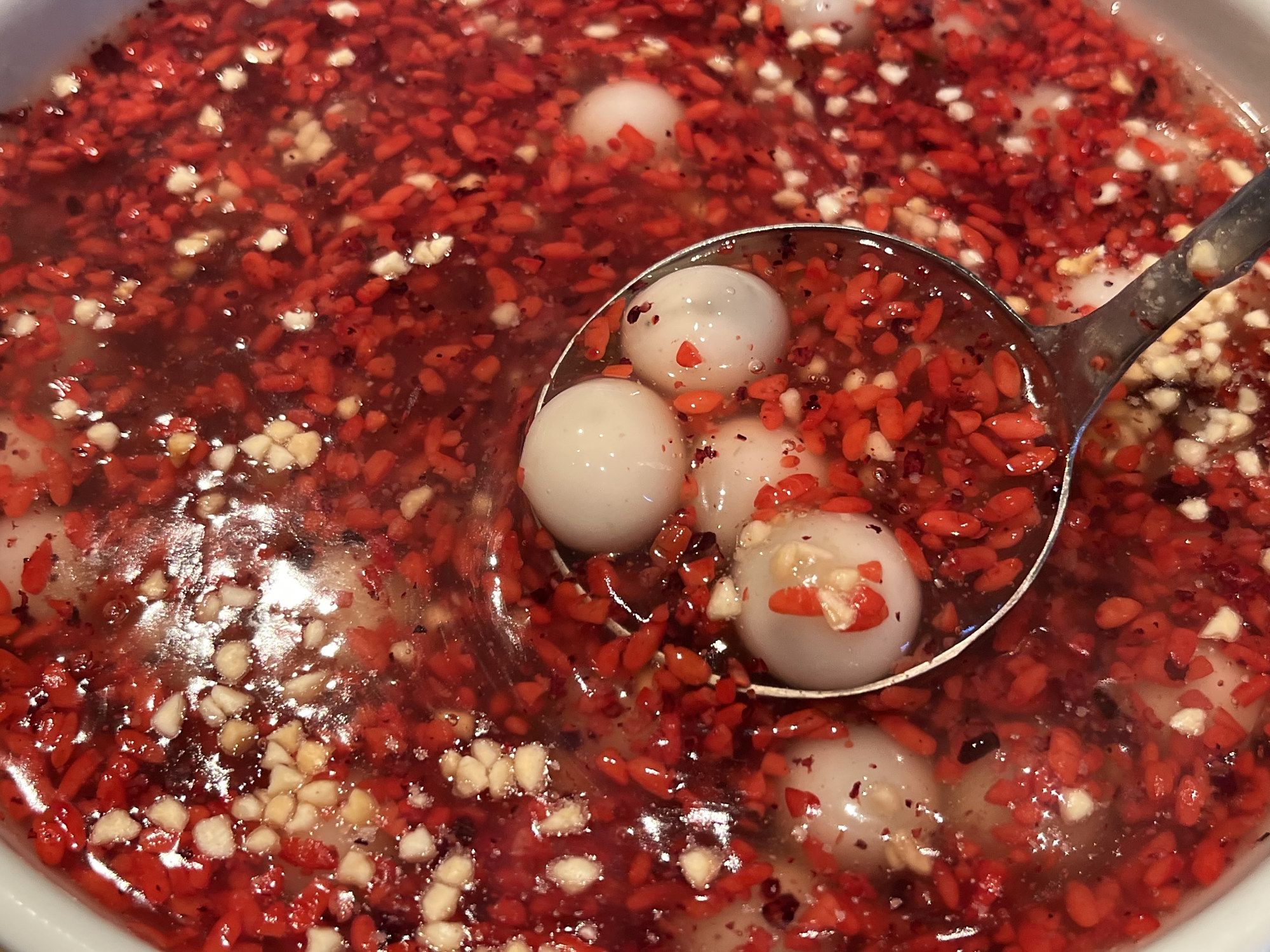 南塘老街有很多美食餐厅。人均消费看个人在80-100元左右。因为此行目的地是舟山,在南塘老街吃完午餐就前往舟山了。 到宁波必点的一道菜品是宁波汤圆,红色的红曲,酒酿的汤圆很好吃!在别的地方吃不到这样的味道,小伙伴吃过后都赞不绝口。不会很甜,可口。