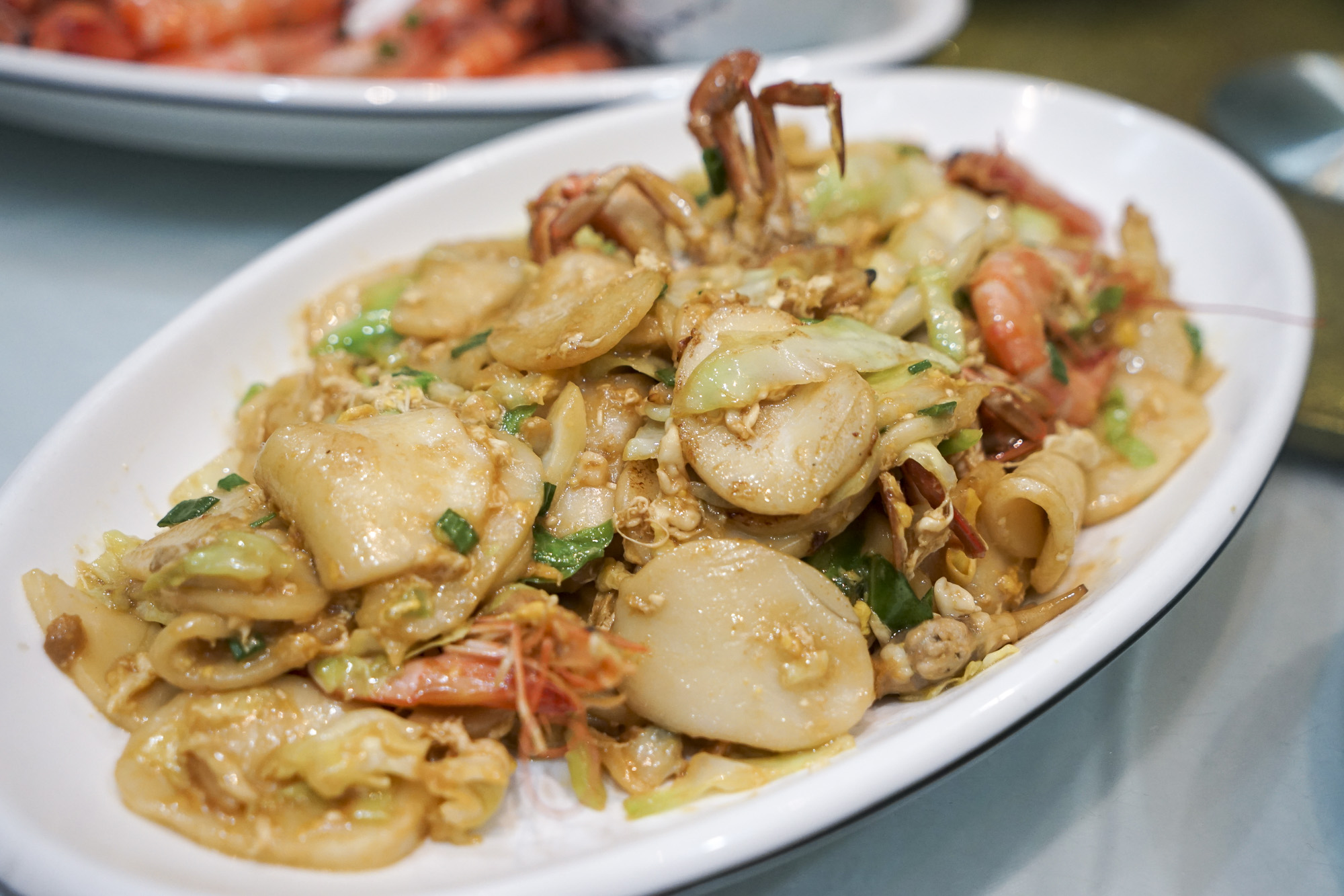 排档的海鲜是自己挑选的。老板会问你要什么口味的做法。葱油梭子蟹、红烧舟山带鱼、海鲜炒年糕、椒盐豆腐鱼等等,都是店里的特色。特别推荐他们家的鱼头豆腐汤,鱼汤烧得白白的,味道鲜美!