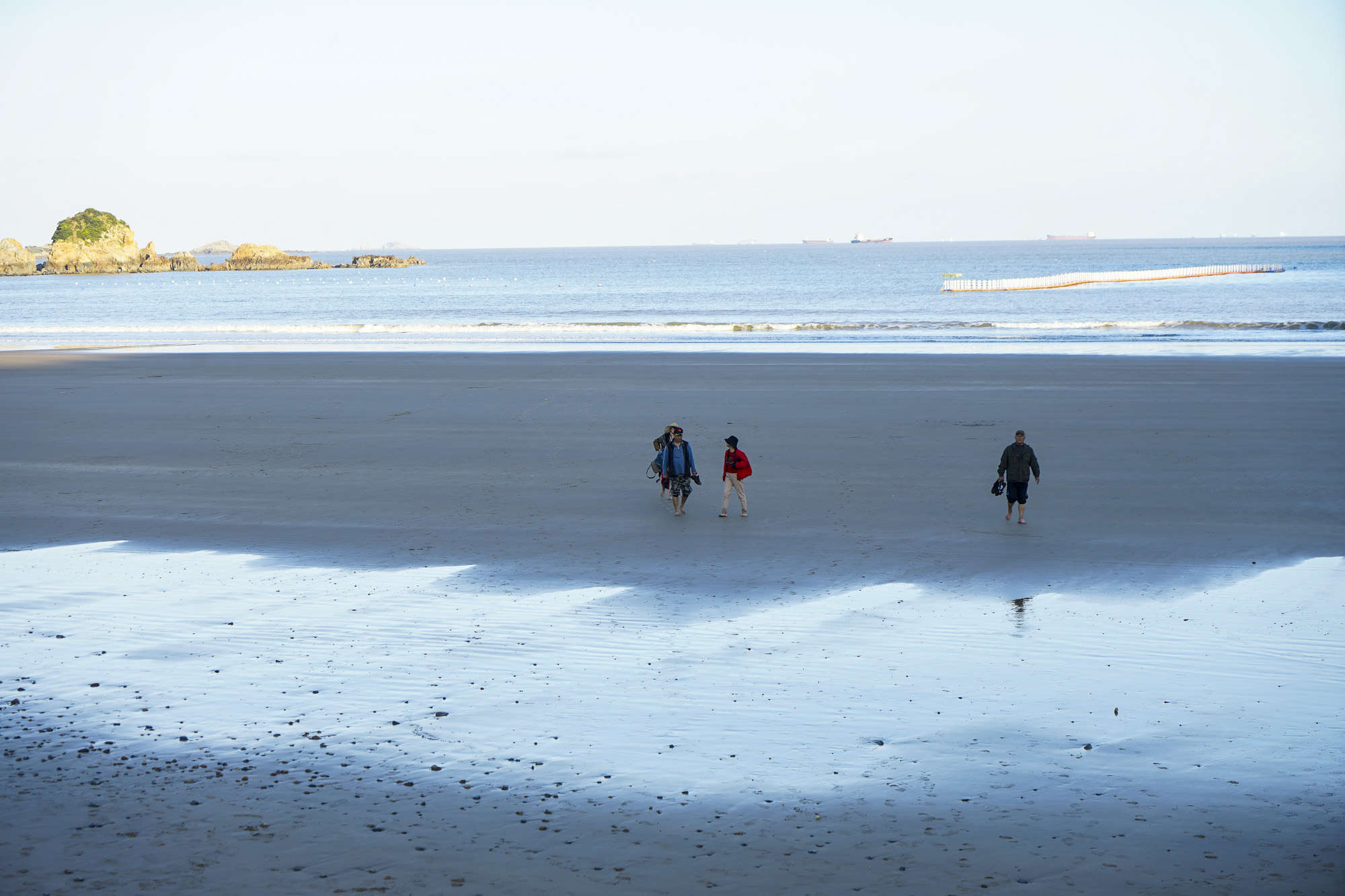 基湖沙滩是舟山群岛最大的天然海滨浴场,全长2200米。基湖沙滩位于本岛菜园镇基湖村,位于嵊泗列岛风景区的核心区域。沙滩边也有各式各样的游玩项目。因为时间的关系,我们就在沙滩边拍照也很开心。陶醉在海滨沙滩的美景里,久久不舍得离开!有时候风比较大,注意多穿一件防风衣。