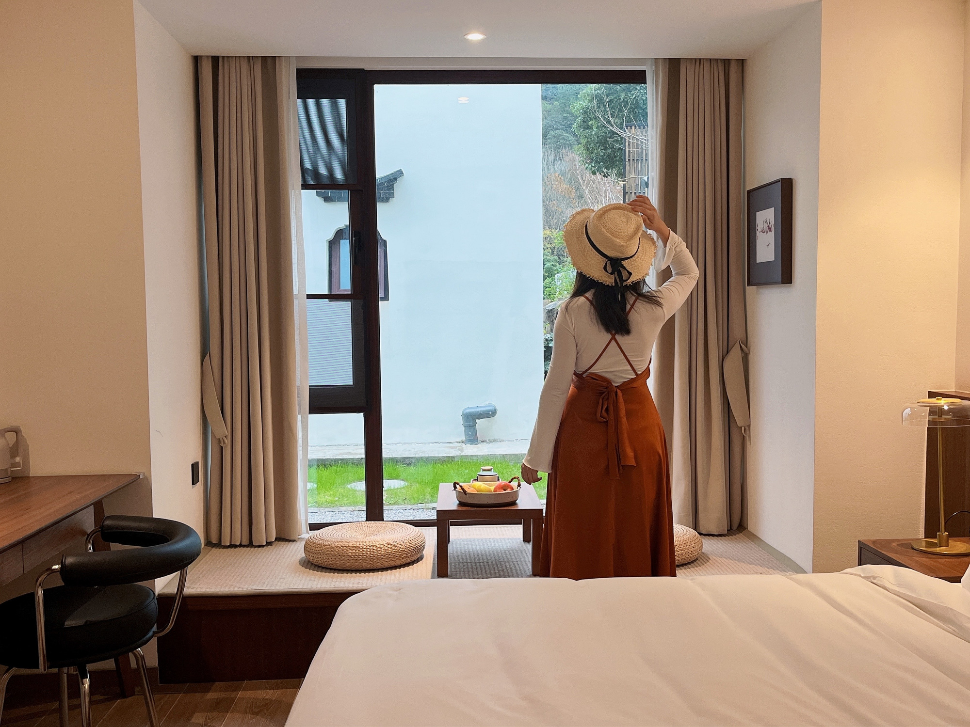 房间宽敞明亮!空间感十足!真的超爱!房间莫兰迪色系显得柔和又高级!喜欢房间的整体家居配色!在房间泡澡,听一首歌,放松身心、真的是享受度假美美的心情。