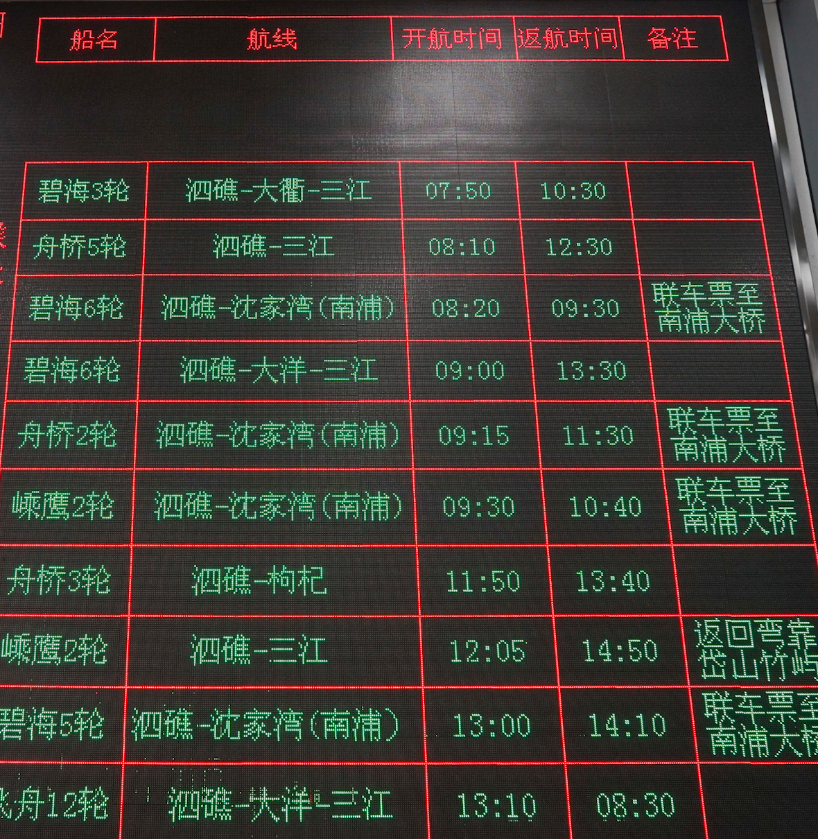 从三江码头到嵊泗大约2.5小时。去嵊泗旅行要注意看下当天的天气动态,遇到大风的时候可能会停航。可以在出行前拨打码头的电话询问,及时掌握船期信息。我在现场看到码头有个GZH:嵊泗客运。可以了解码头船运信息