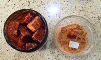 6.把调料拌匀,豆腐在调料里洗个澡每面都沾上料。