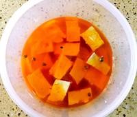 10.装好不能马上吃,需要在等待一礼拜后可以吃了,这是在瓶子里5天拿出来的,夹开一块里面白白的外面辣辣的。