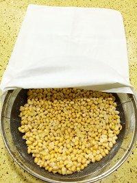 这是霉好的黄豆 和霉豆腐一样 做的那几天下大雪 我们这边是木有暖气的 冷死人……给豆子包个面粉袋保暖