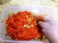 6.然后在拌匀的盐、白糖、鸡精中打个滚,再裹上辣椒油,放入罐子里,密封一周就可以享用了。