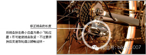 1、将链条挂在小盘和小飞上,尽可能保持链条张紧;
