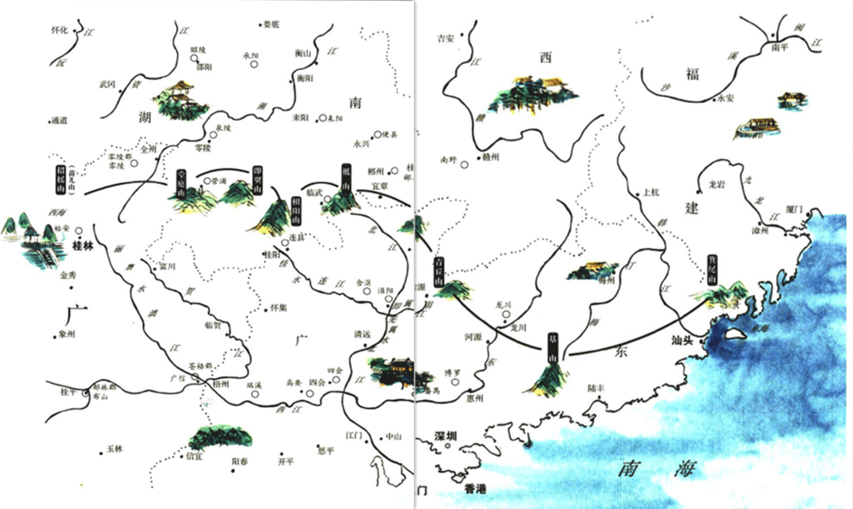 老铁今日继续解读《山海经》 南山经第一山系第四节,下面也是张步天教授的地图。