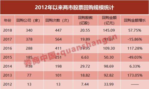 据统计今年以来两市共有340家公司实施回购,累计回购447次,家数与次数都接近去年全年水平,合计回购股票20.55亿股、较去年去年高出3.31%,回购金额145.09元、较去年全年高出57.75%,创A历史新高,而今年只过去了不到7个月。