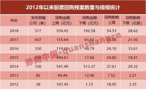 据统计,参照Choice统计口径,今年以来累计有517家公司发布回购预案,估算最高回购股数54.53亿股、最低回购股数28.62股,均为A股历史最高数字;同时,最高回购金额550.45亿元、为A股最高记录,最低回购金额192.58亿元、只低于2014年水平。