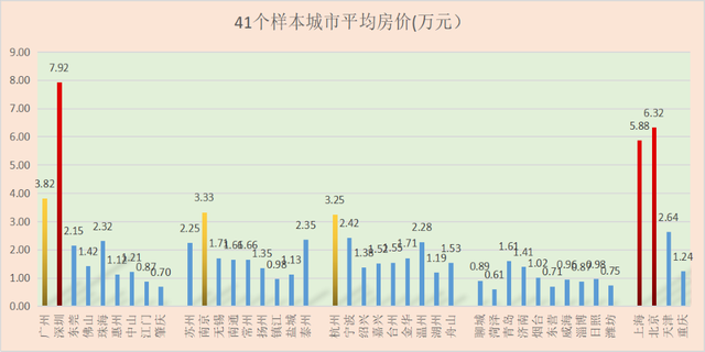 人均住户贷款,与城市平均房价状况是密切相关的。我们可以观察一下41市当前的平均房价图表: