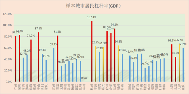 由于以上数据系居民杠杆率的基础数据,我们不浪费篇幅过多解释说明。据以上数据,我们测算出样本城市GDP维度的居民杠杆率如下: